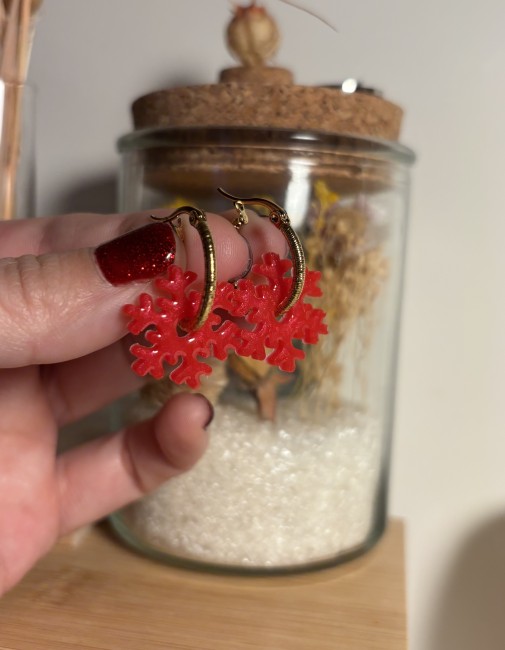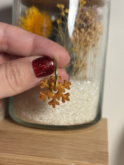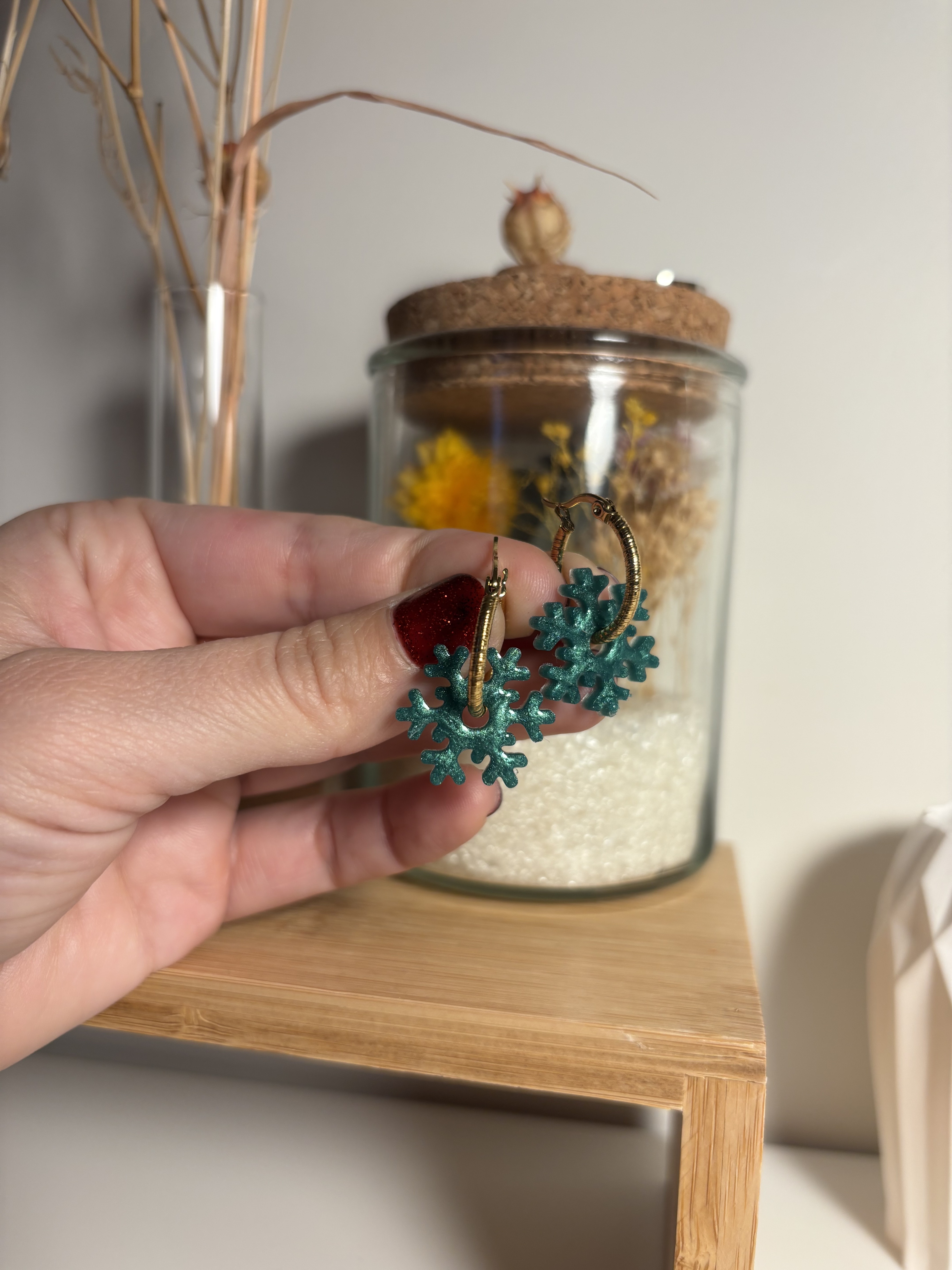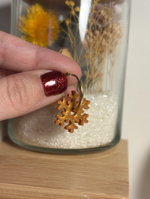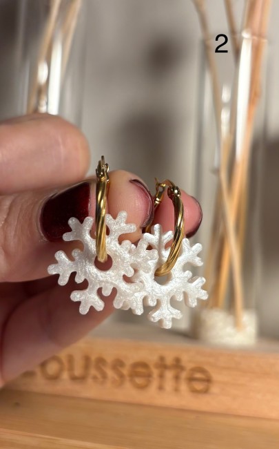 Elles sont sublimées par un flocon en résine de 20 mm, réalisé entièrement à la main, avec amour et délicatesse.