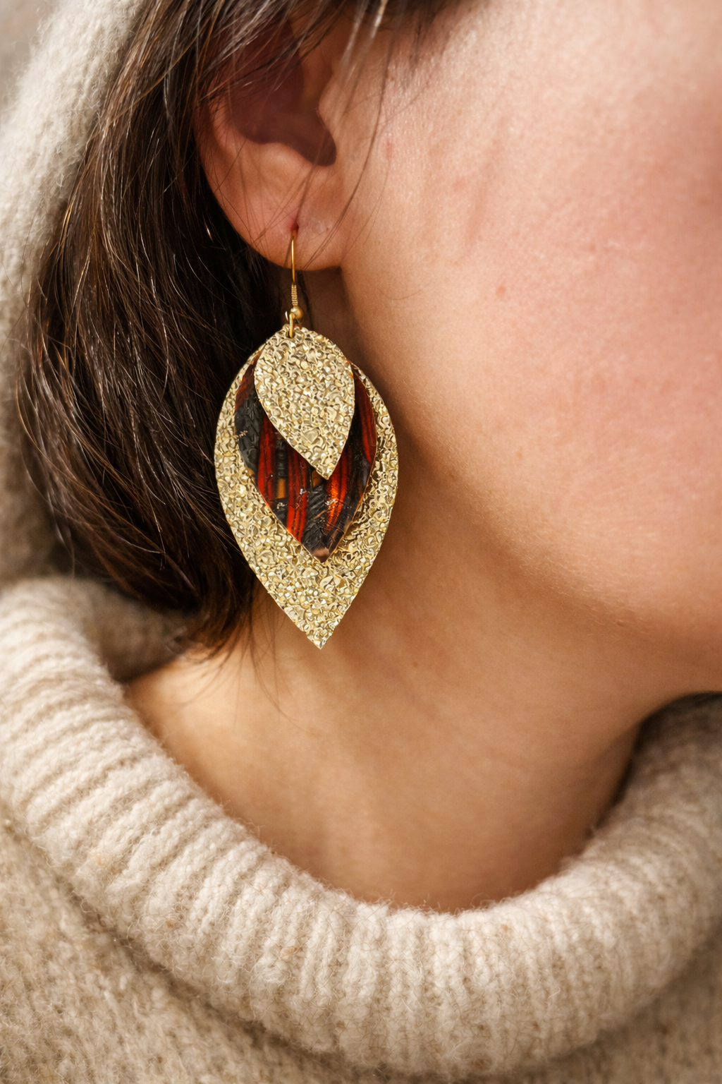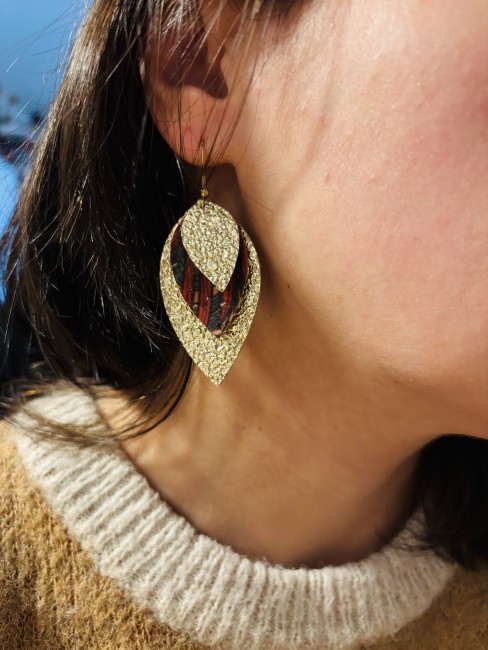 Boucles d’oreilles acier inoxydable feuilles