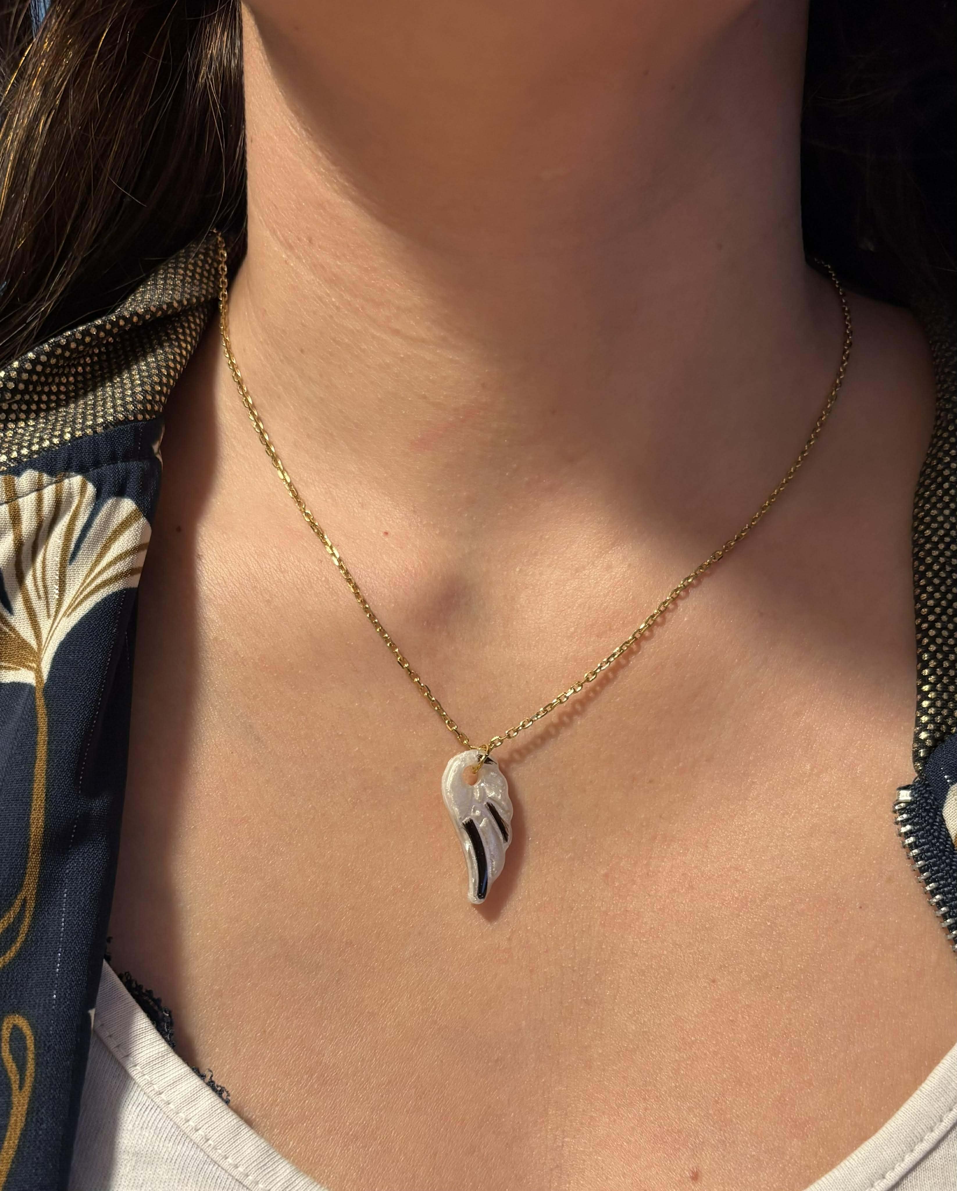 Ce collier délicat en forme d’aile symbolise la protection, la liberté et le lien éternel. Une création pleine de douceur et d’émotion, pensée pour accompagner chaque instant de vie.