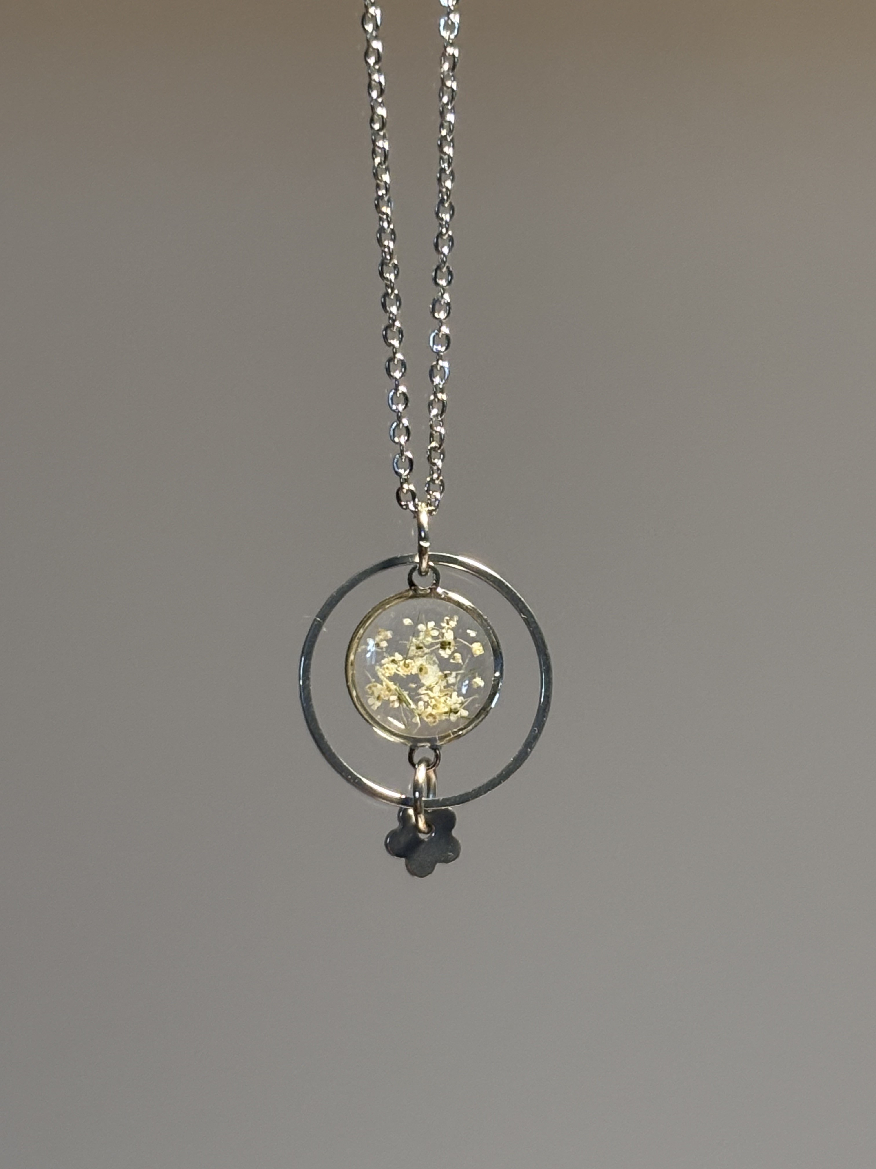 Apportez une touche de poésie et de nature à votre tenue avec ce collier délicat, réalisé à la main et orné de véritable carotte sauvage, soigneusement conservée dans la résine.