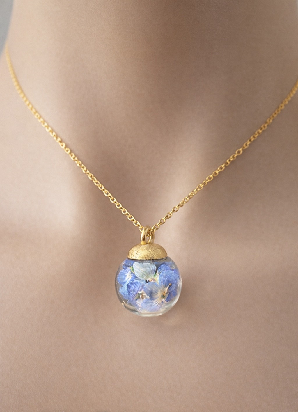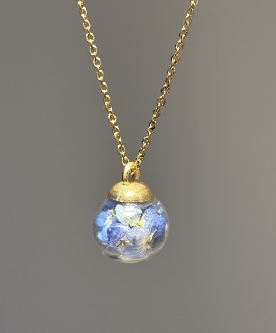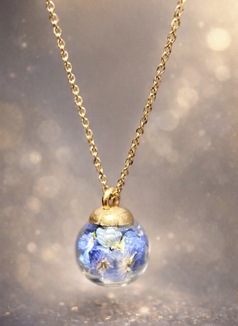 - Pendentif : sphère de verre avec inclusion de véritables fleurs Veronique