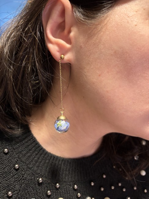Boucles d’oreilles pendantes Véronique dans boule de verre