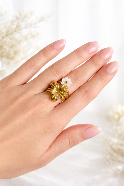 Bague acier inoxydable nacre réglable