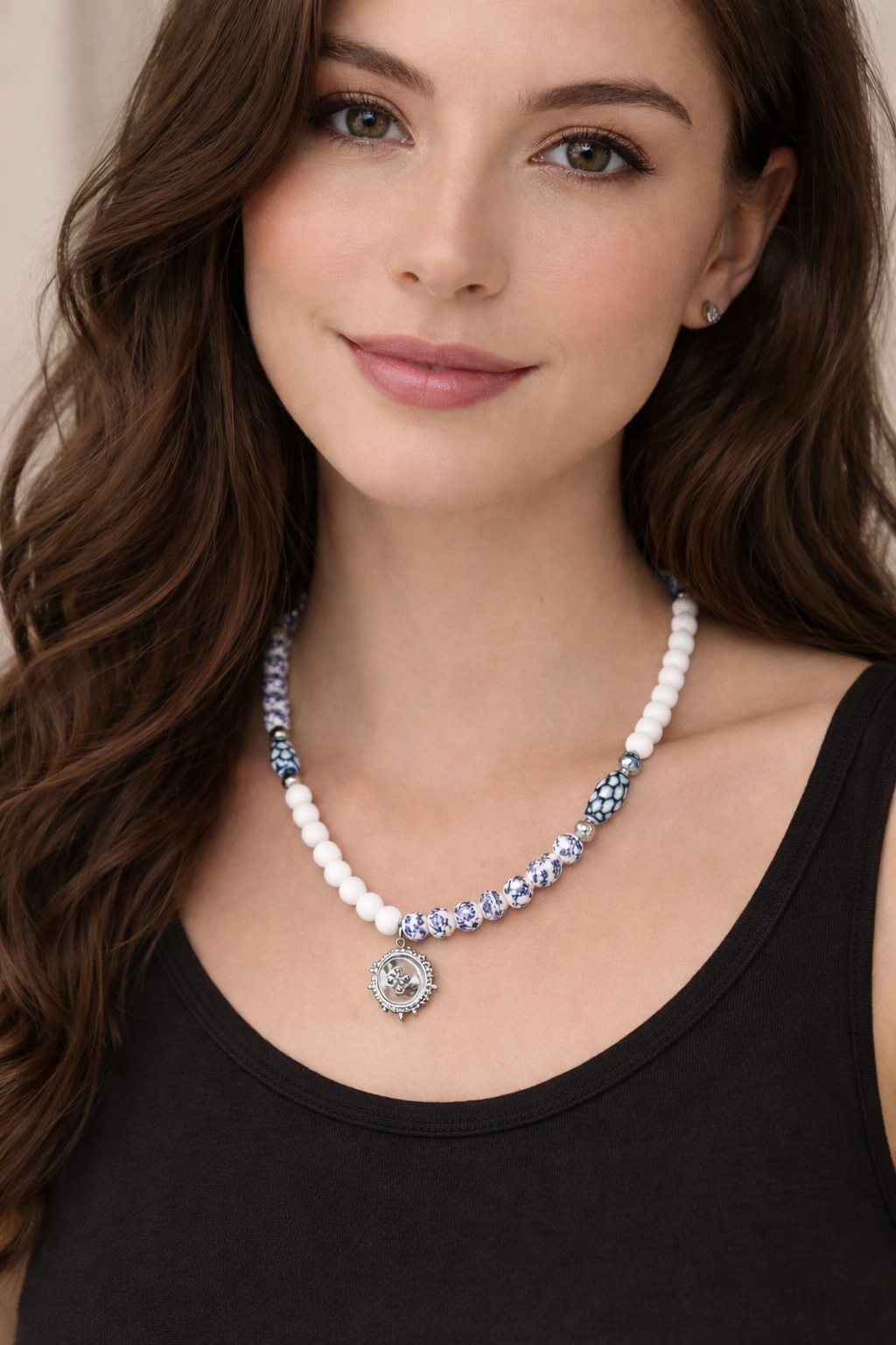 Collier perles céramique & acier inoxydable