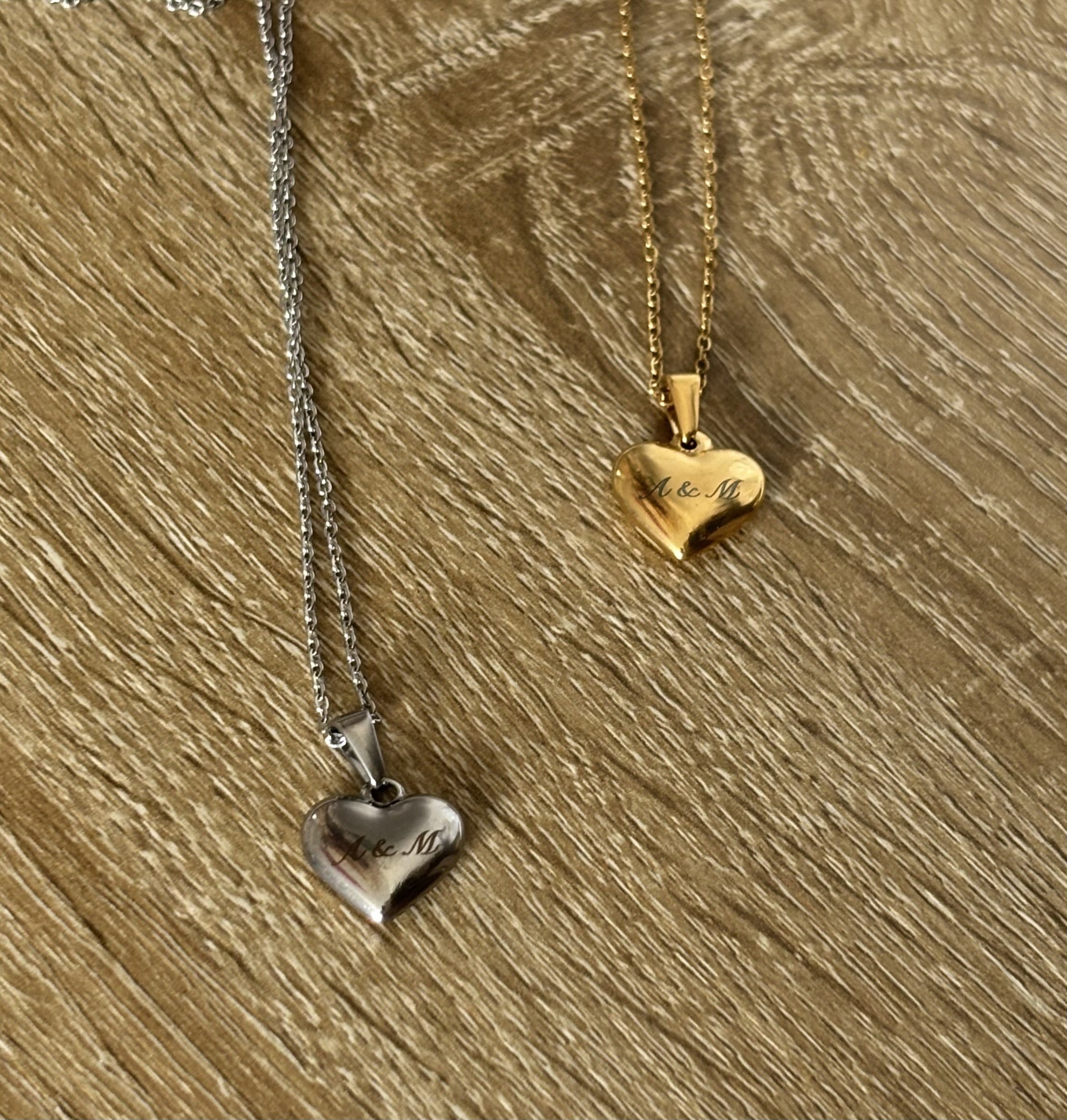 Ce délicat collier en acier inoxydable est orné d’une breloque cœur à personnaliser avec vos initiales, symbole d’un lien unique et précieux.