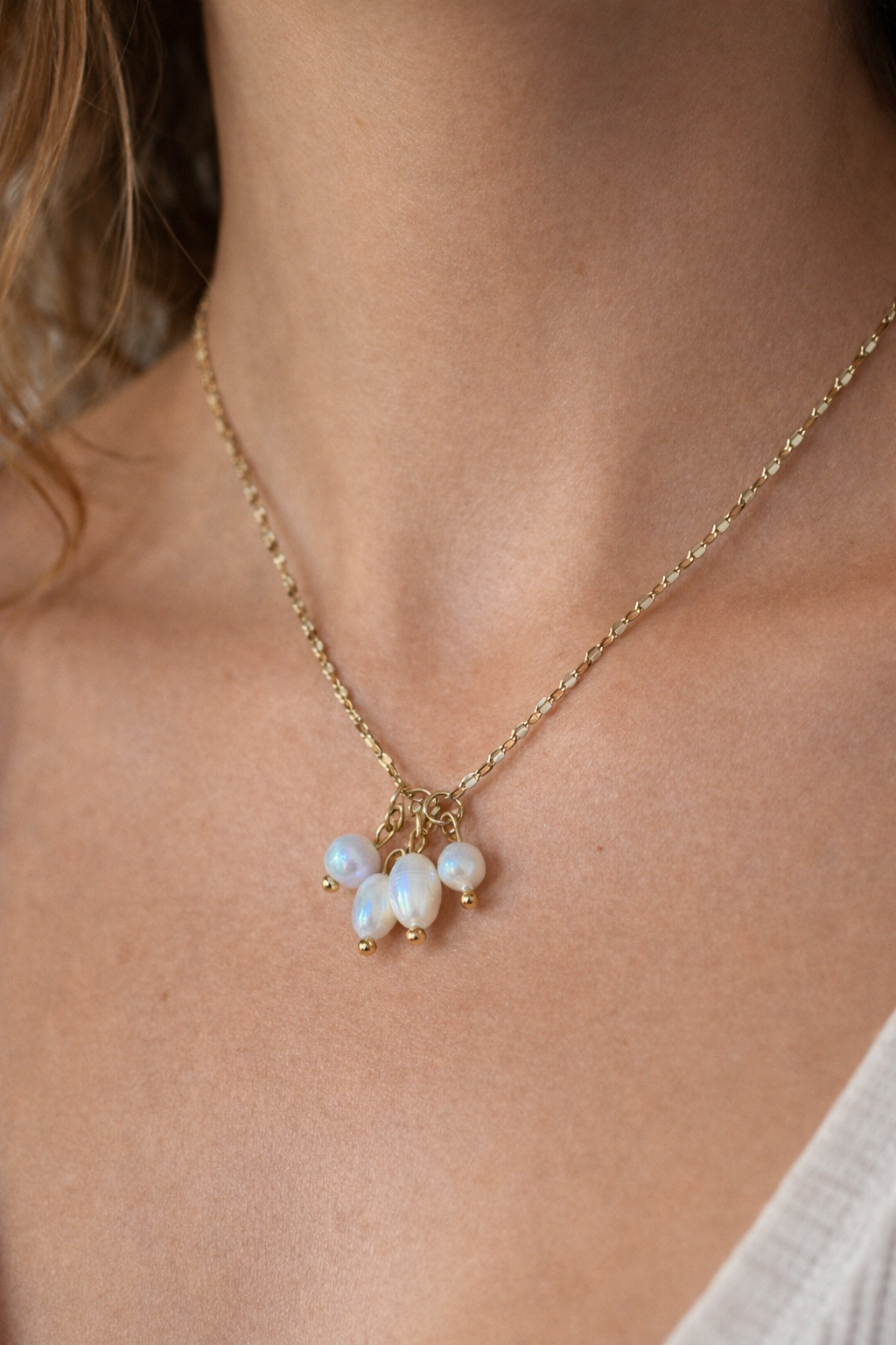 Ce collier en acier inoxydable doré est sublimé par de véritables perles d’eau douce, chacune unique… comme vous.
