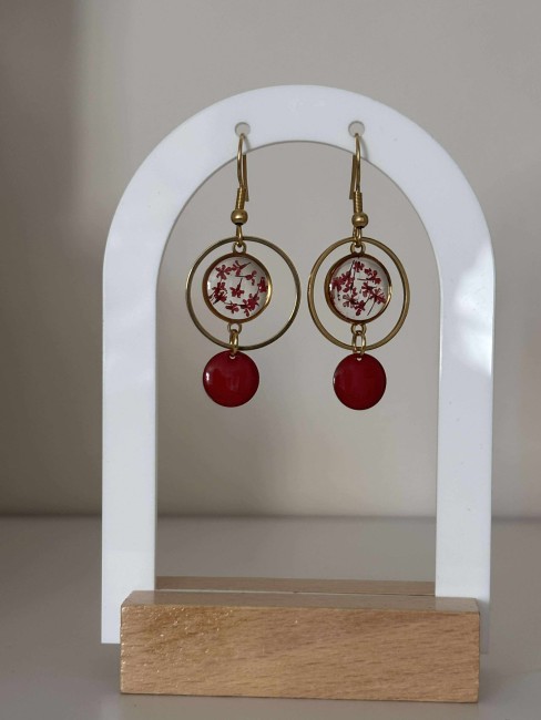 Boucles d'oreilles résine inclusion fleurs séchées carottes sauvages rouge